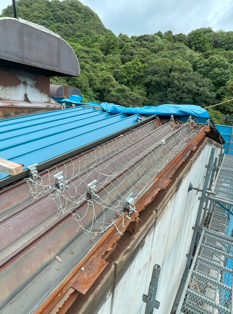 既存の屋根を残して、その上に重ね葺きします。店舗や工場など
